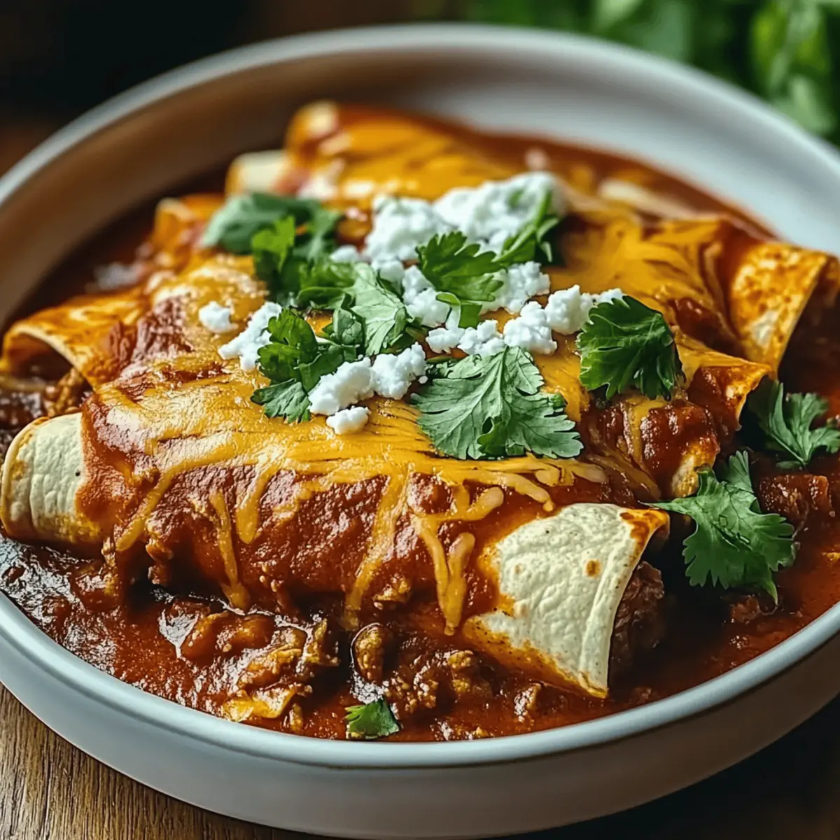 Experience the comforting flavors of Birria Enchiladas with slow-cooked meat, corn tortillas, and rich sauce.