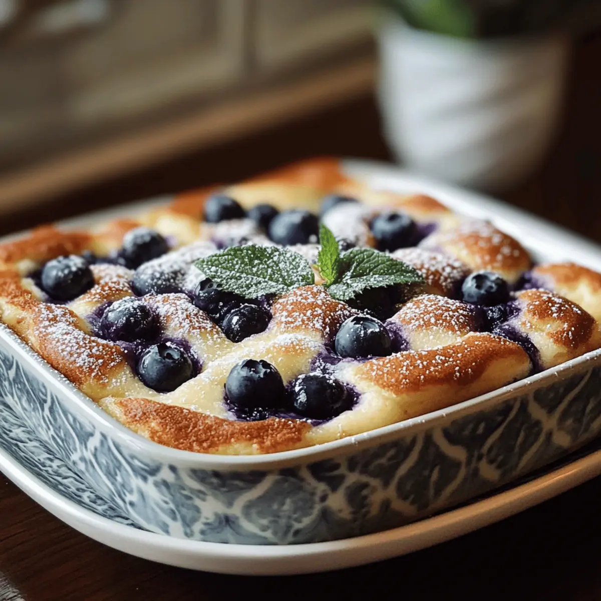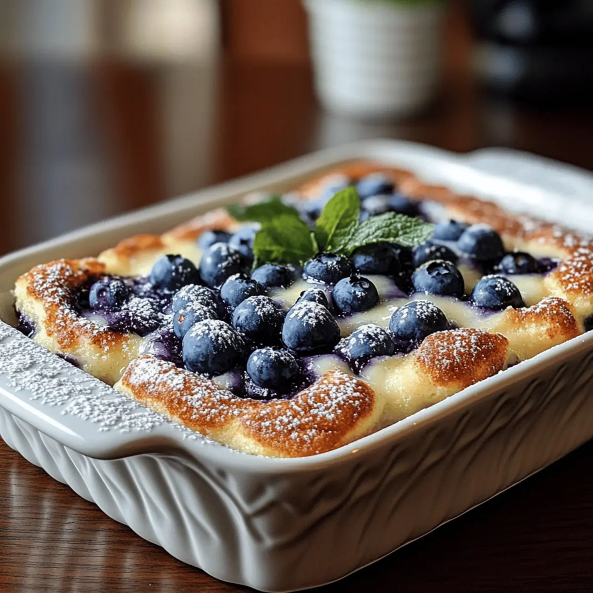 Jump to Recipe Print RecipeAs the sun peeks through the kitchen window, the smell of warm pancakes greets me like an old friend. Today, I’m excited to share my Blueberry Buttermilk Pancake Casserole, a delightful breakfast that merges the charm of classic pancakes with the ease of casserole cooking. Not only is this dish a fantastic time-saver compared to flipping individual pancakes, but it’s also incredibly customizable, making it a go-to for any gathering or family brunch. You can get creative with toppings and substitutes, creating a unique twist that will leave everyone begging for seconds. So, are you ready to transform your mornings with this simple and scrumptious recipe? Let’s dive in! Why is this casserole a game-changer? Easy-to-Make: This Blueberry Buttermilk Pancake Casserole requires minimal effort, letting you focus on enjoying brunch rather than juggling multiple pans. Customizable Delight: Feel free to swap blueberries for your favorite berries or even add chocolate chips for a sweet twist! Crowd-Pleaser: Perfect for family gatherings or casual brunches, this dish will impress everyone around the table. Deliciously Fluffy Texture: Each bite invites you into a world of fluffy pancake goodness, paired with sweet, juicy blueberries. Make-Ahead Magic: Prep it the night before and bake in the morning—breakfast will be ready when you are! Serve it alongside homemade blueberry compote or a scoop of whipped cream for a breakfast that feels special—just like Cinnamon Buttermilk Pancakes you can enjoy anytime! Blueberry Buttermilk Pancake Casserole Ingredients Get ready to whip up a delicious breakfast delight! For the Casserole All-purpose flour – Provides structure to the pancake; can substitute with whole wheat flour for a heartier texture. Baking powder – A leavening agent for fluffiness; ensure it’s fresh for the best rise. Baking soda – Works alongside baking powder to boost fluffiness; don’t skip it! Salt – Enhances flavor throughout; essential for balancing sweetness. Granulated sugar – Adds sweetness; brown sugar can offer a richer touch. Eggs – Act as a binding agent; essential for holding the casserole together. Buttermilk – Contributes moisture and tang; milk plus vinegar can be a good substitute. Unsalted butter – Adds richness; vegetable oil can replace it for a dairy-free option. Vanilla extract – Provides aromatic sweetness; almond extract can be a delightful alternative. For the Blueberry Filling Fresh blueberries – The star ingredient for sweetness and moisture; feel free to replace them with other berries if you prefer. Lemon juice – Balances sweetness while enhancing the flavor of blueberries; lime juice can work in a pinch. Cornstarch – Thickens the blueberry filling; arrowroot powder can also be used as a substitute. For the Optional Glaze Powdered sugar – For a sweet drizzle on top; regular granulated sugar can be used if preferred. Maple syrup – A classic accompaniment that adds extra sweetness; serve warm! Whipped cream – A luscious topping that makes breakfast feel indulgent; perfect for a special touch. Fresh mint leaves – For garnish; they add a refreshing pop of color and flavor. With these easy-to-find ingredients, you’re just steps away from creating an unforgettable Blueberry Buttermilk Pancake Casserole that will delight your family and friends! Step‑by‑Step Instructions for Blueberry Buttermilk Pancake Casserole Step 1: Prepare the Blueberry Filling In a medium saucepan over medium heat, combine 3 cups of fresh blueberries, a sprinkle of sugar, and a splash of lemon juice. Stir gently and cook for about 5 minutes, allowing the sugar to dissolve and the blueberries to soften. You’ll know it’s ready when the mixture is fragrant and bubbly, with the blueberries beginning to release their juices. Step 2: Thicken the Filling In a small bowl, whisk together cornstarch and a few tablespoons of cold water until smooth. Gradually add this mixture to the cooked blueberries, stirring continuously. Continue to cook for an additional 2-3 minutes until the filling thickens and becomes glossy. Remove from heat and fold in any remaining blueberries, setting the filling aside to cool slightly. Step 3: Make the Pancake Batter In a large mixing bowl, whisk together 2 cups of all-purpose flour, 2 teaspoons of baking powder, 1 teaspoon of baking soda, and a pinch of salt. In a separate bowl, beat together 3 eggs, 2 cups of buttermilk, melted butter, and a splash of vanilla extract. Pour the wet ingredients into the dry ingredients, gently mixing until just combined; a few lumps are okay to ensure a fluffy Blueberry Buttermilk Pancake Casserole. Step 4: Assemble and Bake Preheat your oven to 375°F (190°C) while you prepare a greased 9×13-inch baking dish. Pour half of the pancake batter into the dish, spreading it evenly. Carefully add the blueberry filling over the batter, ensuring it covers as much surface area as possible. Finally, pour the remaining batter over the blueberry layer, smoothing it gently. Bake in the preheated oven for 30-35 minutes, or until the top is golden brown and a toothpick inserted into the center comes out clean. Step 5: Prepare the Optional Glaze While the casserole is baking, you can prepare an optional glaze. In a small bowl, whisk together 1 cup of powdered sugar, 2 tablespoons of buttermilk, and a splash of vanilla extract until smooth and creamy. If the glaze is too thick, add a little more buttermilk, adjusting until you achieve your desired consistency. Step 6: Serve and Enjoy Once baked, allow the Blueberry Buttermilk Pancake Casserole to cool for about 10 minutes before slicing into squares. Drizzle with your optional glaze, if using, and serve warm topped with maple syrup, whipped cream, and fresh mint leaves for a delightful brunch experience that everyone will remember. Storage Tips for Blueberry Buttermilk Pancake Casserole Room Temperature: It’s best to enjoy your Bl