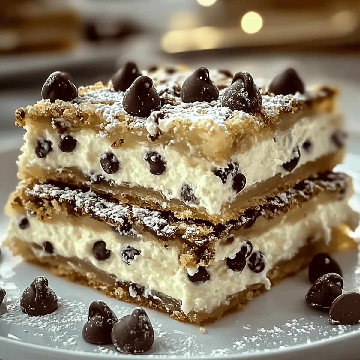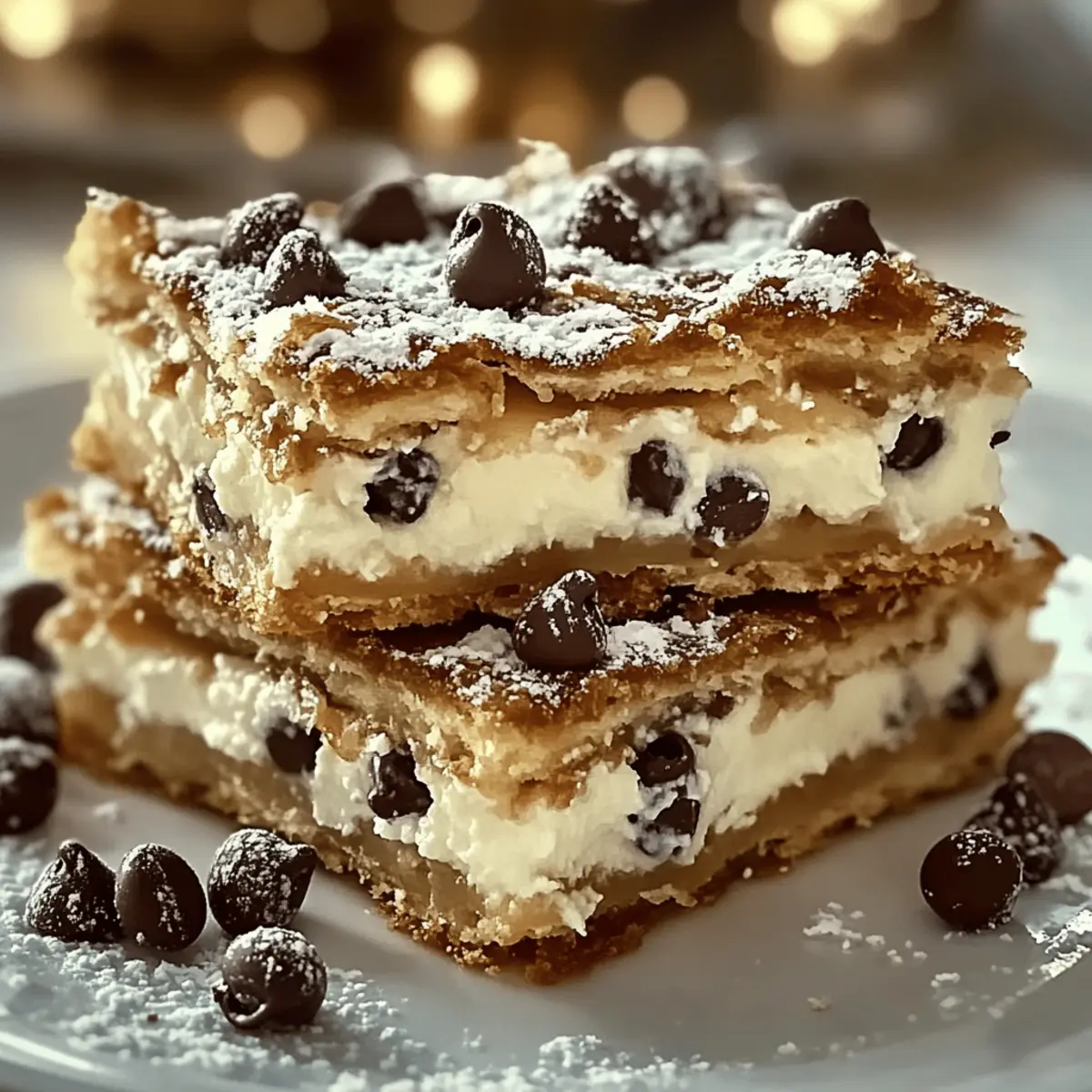 As the aroma of baking fills the kitchen, I can’t help but feel transported to a bustling Italian bakery, where trays of sweet delights line the counters. Today, I’m sharing my cherished recipe for Classic Cannoli Squares, a delightful treat that effortlessly merges creamy ricotta filling with a crispy crust. One of the best aspects of this dessert is its stunning versatility: you can easily personalize the filling with chocolate chips, nuts, or even a zesty lemon twist. Plus, it’s a total crowd-pleaser with minimal prep time, making it perfect for those cozy family dinners or festive gatherings. So, are you ready to whisk up a little culinary magic and bring a taste of Italy to your home? Why Make Cannoli Squares Today? Simplicity: With just a few ingredients and straightforward steps, anyone can whip these up with ease. Versatility: Customize your filling with chocolate chips, nuts, or even a hint of lemon zest, making it perfect for any palate. Crowd-Pleaser: Impress your family and friends with these irresistible treats at your next gathering. Time-Saving: Enjoy the delightful flavors of classic cannoli without the fuss, as these squares come together quickly. Authentic Flavor: Experience the rich taste of Italy right in your own kitchen, making them an ideal dessert for any occasion. Whether you’re a seasoned chef or a curious beginner, this recipe will elevate your dessert game! Cannoli Squares Ingredients • Discover the delightful components of these Cannoli Squares that make them so special! For the Filling Ricotta Cheese – Provides a creamy base for the filling; use whole milk for a richer texture. Powdered Sugar – Adds sweetness; substitute with coconut sugar for a lower glycemic option. Vanilla Extract – Enhances flavor depth; opt for pure vanilla for the best taste. Cinnamon – Offers a warm spice note; omit for a more traditional cannoli flavor. Mini Chocolate Chips – Introduces sweetness and texture; dark chocolate enhances the richness. For the Crust Pre-Made Pie Crusts – Forms the crisp foundation; homemade crust is also a delicious option. Large Egg – Used for the egg wash to give the crust a beautiful, glossy finish. Sugar (for sprinkling) – Adds a sweet crunch to the baked top layer. For the Garnish Chopped Pistachios – Provides crunch and visual appeal; perfect for adding a pop of color. Maraschino Cherries – Optional decorative elements that add sweetness and charm. Extra Chocolate Chips – For those who desire a more indulgent, chocolatey experience. Step‑by‑Step Instructions for Cannoli Squares Step 1: Prepare the Filling In a medium bowl, whisk together the ricotta cheese, powdered sugar, vanilla extract, cinnamon, and mini chocolate chips until the mixture is smooth and creamy. This delightful filling is the heart of your Cannoli Squares, embodying a rich and sweet flavor. Set the filling aside for a moment as you move on to the oven. Step 2: Preheat Oven Preheat your oven to 375°F (190°C). This temperature is crucial for achieving that golden-brown crust and bubbling filling that makes Cannoli Squares so delectable. As the oven heats up, you’ll have plenty of time to prepare your crust. Step 3: Roll Out Crust Take one pre-made pie crust and gently fit it into a 9×9-inch baking dish. Press it firmly into the corners to ensure a good fit, as this will form the bottom layer of your Cannoli Squares. Aim for an even thickness to promote uniform baking. Step 4: Add Filling Spoon the creamy ricotta filling over the crust, carefully spreading it out with a spatula while leaving a small border along the edges. This step is where the magic begins, as the filling melds beautifully with the crust during baking, promising a delightful treat. Step 5: Top with Second Crust Place the second pie crust on top of the filling, ensuring it covers the mixture entirely. Use your fingers or a fork to seal the edges, then brush the top with an egg wash for a beautiful glossy finish. Sprinkle sugar over the crust for an added sweet crunch that will enhance your Cannoli Squares. Step 6: Bake Slide the baking dish into the preheated oven and bake for 30-35 minutes. Keep an eye on the Cannoli Squares; they’re ready when the top is golden brown and the filling is bubbling slightly at the edges. Your kitchen will fill with irresistible aromas during this time! Step 7: Cool and Serve Once baked to perfection, remove the Cannoli Squares from the oven and allow them to cool for at least 30 minutes. This cooling period is vital, as it helps the filling set. After cooling, slice them into squares and serve warm or chilled, offering a delightful treat for all to enjoy. Helpful Tricks for Cannoli Squares Quality Counts: Use high-quality ricotta and pure vanilla for the best flavor in your Cannoli Squares. The ingredients really shine through! Drain Ricotta: To achieve a thicker filling, drain excess moisture from your ricotta cheese, preventing a soggy texture. Watch the Oven: Keep an eye on your squares as they bake to avoid over-browning. Every oven is different, and timing can vary! Cooling Is Key: Allow your Cannoli Squares to cool for at least 30 minutes before slicing. This helps the filling set and makes cutting easier. Experiment with Fillings: Don’t hesitate to customize your filling! Add different nuts, dark chocolate, or zesty citrus for a delightful twist. Storage Tips for Cannoli Squares Room Temperature: Cannoli Squares can be kept at room temperature for up to 2 hours. If your gathering extends longer, refrigerate them to maintain freshness. Fridge: Store leftover Cannoli Squares in an airtight container in the fridge for up to 3 days. This helps keep the crust crisp while preserving the creamy filling. Freezer: For longer storage, freeze individual squares in airtight containers or freezer bags for up to 2 months. Thaw in the fridge overnight before serving. Reheating: If desired, reheat the squares briefly in the oven at 350°F (175°C) for