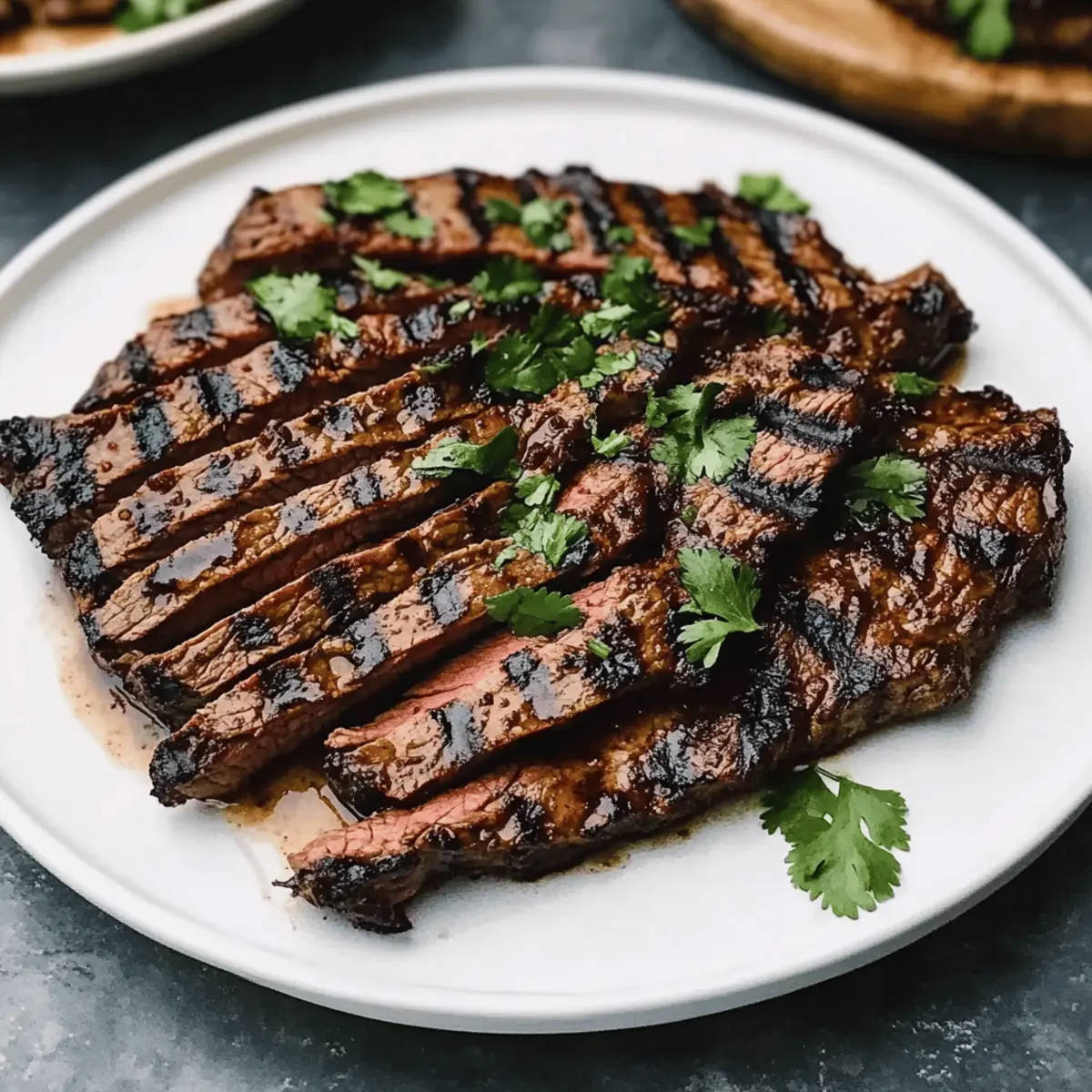 Jump to Recipe Print RecipeAs I stood by the grill one evening, the sound of creaking chairs and laughter wafted through the air, transforming a simple weeknight into a celebration. The star of the show? This Charred and Juicy Marinated Skirt Steak. With its mouthwatering aroma and perfectly charred exterior, it’s sure to become your go-to for effortless, flavorful dinners. Picture this: a handful of easy-to-find ingredients meld together to create a tender steak that’s just as perfect for a cozy family dinner as it is for hosting friends. Not only is it a quick and satisfying meal, but it also offers an impressive flavor boost that will have everyone asking for seconds. Ready to fire up the grill and experience this culinary delight for yourself? Let’s dive in! Why is this steak your new favorite? Simplicity at Its Best: With just a few pantry staples, preparing this delicious steak takes minimal effort, making it perfect for busy weeknights. Rich, Bold Flavor: The marinade’s combination of soy sauce and smoked paprika infuses every bite, elevating the juicy beef to new heights. Crowd-Pleasing Appeal: Whether it’s a casual family meal or a weekend barbecue, this steak is sure to impress guests—just like my Garlic Herb Steak. Quick Cooking Time: Grilling this steak takes only minutes, meaning you can enjoy a flavorful dinner without waiting forever, especially on those hectic evenings. Versatile Pairings: Serve it alongside grilled vegetables, fresh salad, or a hearty potato salad for a satisfying meal that caters to all tastes—perfect when you want something delicious and easy. Charred and Juicy Marinated Skirt Steak Ingredients For the Marinade • Skirt Steak – The main protein that provides a rich, beefy flavor; consider flank steak as a substitute. • Olive Oil – Acts as a marinade base for moisture; avocado oil also works well. • Soy Sauce – Adds umami and saltiness; opt for tamari if you need a gluten-free option. • Red Wine Vinegar – Provides acidity to balance richness; apple cider vinegar can be used instead. • Worcestershire Sauce – Adds depth of flavor with tanginess; omit for a gluten-free recipe. • Garlic (minced) – Contributes aromatic intensity; fresh garlic is always best. • Brown Sugar – Helps caramelize and balance flavors; coconut sugar is a great alternative for less processing. • Smoked Paprika – Adds a smoky flavor and color; if unavailable, regular paprika can be used but will lack smokiness. • Black Pepper – An essential seasoning; fresh ground pepper elevates the taste. • Salt – Enhances and balances all flavors; adjust according to taste preferences. • Crushed Red Pepper Flakes – Optional for heat; leave out if you prefer a milder dish. • Fresh Cilantro or Parsley – Optional garnish that adds freshness and color. Elevate your grilling game with these ingredients and savor the vibrant experience of our Charred and Juicy Marinated Skirt Steak! Step‑by‑Step Instructions for Charred and Juicy Marinated Skirt Steak Step 1: Prepare Marinade In a medium bowl, whisk together 1/4 cup of olive oil, 1/4 cup of soy sauce, 2 tablespoons of red wine vinegar, 1 tablespoon of Worcestershire sauce, 4 cloves of minced garlic, 2 tablespoons of brown sugar, 1 teaspoon of smoked paprika, 1/2 teaspoon of black pepper, and 1 teaspoon of salt. Ensure all ingredients are well combined before utilizing this delicious marinade for your Charred and Juicy Marinated Skirt Steak. Step 2: Marinate Steak Place your 1.5 pounds of skirt steak into a resealable plastic bag or shallow dish and pour the prepared marinade over the steak, ensuring it is fully coated. Seal the bag or cover the dish tightly and refrigerate for at least 2 hours, or preferably overnight, to let the flavors deeply infuse into the meat for your Charred and Juicy Marinated Skirt Steak. Step 3: Preheat Grill About 20 minutes before grilling, preheat your grill or grill pan to high heat, aiming for at least 450°F to 500°F. For a charcoal grill, wait until the coals are ashed over and glowing. This high temperature is crucial for achieving that picturesque char on your skirt steak, enhancing both flavor and texture. Step 4: Grill Steak Once heated, carefully remove the skirt steak from the marinade and discard the marinade. Place the steak on the grill and cook for 3 to 4 minutes on each side, aiming for an internal temperature of 130°F for medium-rare. Look for a deep brown crust to form on the outside, signaling it’s time to flip for that perfect charred exterior. Step 5: Rest & Slice After grilling, transfer the steak to a cutting board and allow it to rest for 5 to 10 minutes. This step is vital for maintaining juiciness. Once rested, slice the skirt steak against the grain into thin strips to ensure maximum tenderness. Your Charred and Juicy Marinated Skirt Steak is now ready to serve and enjoy! Make Ahead Options These Charred and Juicy Marinated Skirt Steaks are ideal for meal prep, allowing you to enjoy a delicious home-cooked dinner in a flash! You can marinate the skirt steak up to 24 hours in advance—simply place the meat in a resealable bag with the marinade, seal it tightly, and refrigerate. For the best flavor infusion, aim for at least 2 hours, but overnight is perfect! When you’re ready to grill, take the steak out of the marinade, discard it, and let it come to room temperature for about 15 minutes. This step not only enhances safety but ensures a juicy, tender finish. Enjoy your flavorful, satisfying meal with minimal effort during your busy week! Expert Tips for Charred and Juicy Marinated Skirt Steak Marinate for Maximum Flavor: Aim to marinate the steak overnight for the most tender and flavorful results. A minimal 2-hour marination still works but won’t be as impactful. Use a Meat Thermometer: Ensure you achieve the perfect doneness by using a meat thermometer. For medium-rare, the internal temperature should be 130°F. High Heat is