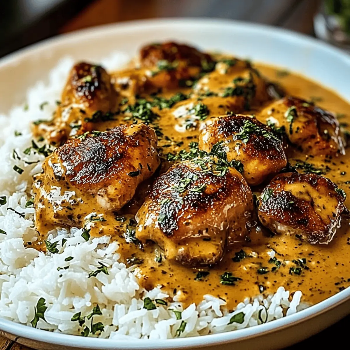 Jump to Recipe Print RecipeAs I stood in my cozy kitchen, the enticing aroma of seared chicken and simmering gravy wafted through the air, instantly transporting me to the heart of Southern comfort. This Best Smothered Chicken and Rice recipe is my go-to for those evenings when I crave something warm and hearty. Bursting with rich flavors, this one-pan meal not only delivers on comfort but also keeps things simple with minimal cleanup—a true win for busy home chefs! The tender chicken thighs, enveloped in a creamy, flavorful gravy atop fluffy rice, create a delightful experience that will satisfy everyone around the table. Have you ever wondered how a classic dish can be made so quickly while still being utterly satisfying? Let’s dive into the magic of smothered chicken and rice! Why is Smothered Chicken and Rice Special? Comforting Wholesomeness: This dish wraps you in warmth, making it the perfect choice for family dinners or cozy evenings at home. One-Pan Wonder: With minimal cleanup, it’s ideal for busy cooks who still want hearty, satisfying meals. Flavor Explosion: The rich, creamy gravy and tender chicken are a delightful pair that will please even the pickiest eaters. Adaptable Goodness: Easily switch up ingredients—try Chicken Fried Rice for a quick twist or toss in your favorite veggies for variety. Quick & Easy: Whip up this scrumptious meal in approx. 30 minutes, leaving you more time to enjoy with loved ones. Nostalgic Tradition: Embrace the heartiness of Southern cuisine, creating memories that go beyond just a meal. Chicken and Rice Ingredients • Discover the essentials to elevate your dish! For the Chicken Chicken Thighs – Bone-in, skin-on thighs provide the juiciest flavor; boneless can be a substitute but will lack some richness. Butter – Essential for browning the chicken and creating that flavorful roux. For the Gravy Onions – Sweet and aromatic when sautéed, laying the perfect flavor foundation. Garlic – Fresh minced garlic enhances the overall flavor with its delightful aroma. Flour – Used for dredging the chicken and thickening the gravy to create a luscious texture. Chicken Broth – A savory base that brings depth and body to your dish. Heavy Cream – Adds an indulgent creaminess, making the gravy ultra-comforting. For Seasoning Salt & Pepper – Essential seasonings that amplify every single flavor in the dish. Paprika & Garlic Powder – Provides a subtle kick and enhances the overall flavor profile. For Serving White Rice – The perfect canvas for soaking up that delicious gravy. Fresh Parsley – Brightens up the dish as a colorful garnish that adds a pop of freshness. Dive into the world of Southern comfort food with these key ingredients for Chicken and Rice, ensuring every bite is a hearty delight! Step‑by‑Step Instructions for Best Smothered Chicken and Rice Step 1: Prepare the Chicken Pat the chicken thighs dry with paper towels to ensure a crispy sear, then season generously with salt, pepper, paprika, and garlic powder. Dredge each thigh in flour, shaking off the excess to help create a flavorful crust. This step is crucial for your chicken and rice dish, setting the stage for robust flavors throughout. Step 2: Sear the Chicken In a large skillet or Dutch oven, melt 2 tablespoons of butter over medium heat until it bubbles gently. Carefully place the seasoned chicken thighs skin-side down into the skillet and sear for 4-5 minutes, or until they turn golden brown and crispy. Once done, remove the chicken from the pan and set aside, allowing residual heat to build in the next step. Step 3: Sauté the Aromatics In the same skillet, add chopped onions and sauté for about 5 minutes until they become translucent and lightly golden, stirring occasionally to avoid burning. Then, add minced garlic and cook for an additional 30 seconds until fragrant. This aromatic foundation is essential for the rich gravy that will envelop your chicken and rice. Step 4: Make the Roux and Gravy Sprinkle a spoonful of flour over the sautéed onions and garlic, stirring continuously to form a roux. Gradually whisk in 2 cups of chicken broth until the mixture is smooth and lump-free. Allow the gravy to simmer for about 5 minutes, thickening nicely, before incorporating 1 cup of heavy cream to enhance the creaminess of your smothered chicken. Step 5: Simmer the Chicken Return the seared chicken thighs to the skillet, ensuring they are nestled in the rich gravy. Cover the pan with a lid and reduce the heat to low, allowing everything to simmer for 25-30 minutes. The chicken is ready when it reaches an internal temperature of 175°F and is fork-tender, merging flavors beautifully in your best smothered chicken and rice dish. Step 6: Cook the Rice While the chicken simmers, prepare 1 cup of white rice according to the package instructions, typically boiling it in water or broth for about 18-20 minutes. Fluff the rice once cooked, setting the perfect backdrop for your savory chicken and gravy. The fluffy rice will soak up every delicious bit of the rich sauce. Step 7: Serve and Garnish To plate, serve generous portions of the rice on each plate, then ladle the creamy chicken and gravy over the top. Garnish with freshly chopped parsley to add a pop of color and freshness. This comforting dish of chicken and rice is now ready to bring warmth and joy to your table. How to Store and Freeze Chicken and Rice Fridge: Store leftovers in an airtight container for up to 4 days, keeping chicken and rice separate to maintain texture. Freezer: You can freeze the chicken and gravy together for up to 2 months; just ensure it’s well-wrapped to prevent freezer burn. Reheating: Thaw overnight in the fridge, then reheat on the stove over low heat until warmed through, adding a splash of chicken broth if needed to revive the gravy. Room Temperature: Avoid leaving chicken and rice out for more than 2 hours to prevent spoilage; serve hot and enjoy fresh! Expert Tips for Best Sm