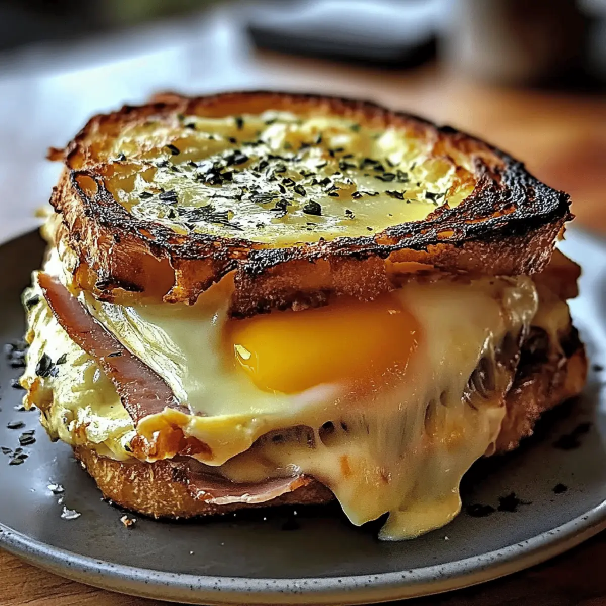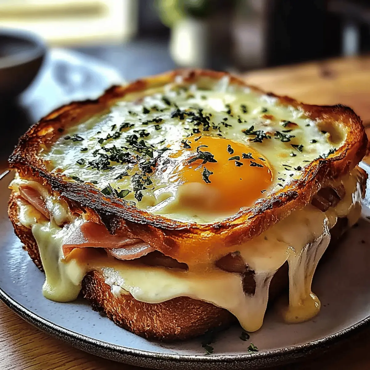 Jump to Recipe Print RecipeThe first bite of a Croque Madame Casserole transports me straight to a charming café in Paris, where the aroma of buttery bread mingles with melting cheese and rich béchamel. This dish is a delightful twist on the classic French sandwich, bringing the cozy comfort of brunch right to your table. With layers of fluffy brioche, creamy Gruyère cheese, and savory turkey ham, it’s not only a feast for the senses, but it’s also a crowd-pleaser that’s perfect for gatherings. Plus, it’s a make-ahead wonder, allowing you to prep in advance and enjoy a stress-free morning or an easy breakfast-for-dinner meal. Who wouldn’t love that? Are you ready to impress your family and friends with this deliciously decadent dish? What Makes This Casserole So Irresistible? Decadent Layers: The combination of buttery brioche, melty Gruyère, and smoky turkey ham creates a symphony of flavors. Ease of Preparation: Assemble the layers ahead of time, making brunch stress-free. This is perfect for morning gatherings! Crowd-Pleasing Appeal: One bite of this comforting dish, and your guests will be raving about it long after brunch is over. Customizable Options: With easy substitutions for dietary needs, like using veggie options instead of turkey ham, you can cater to everyone. Texture Perfection: The crispy top contrasts beautifully with the rich, creamy béchamel and runny egg yolks, ensuring satisfaction in every bite. You can have it ready to bake from the fridge, or check out our tips on make-ahead meals for more ideas! Croque Madame Casserole Ingredients Explore the delightful components of this dish! For the Casserole Brioche – A buttery, slightly sweet base that soaks in the creamy béchamel sauce; if unavailable, challah or French bread works well. Gruyère Cheese – Offers a nutty and creamy flavor, and melts beautifully; substitutions include Emmental or sharp white cheddar. Turkey Ham – Adds a delicious smoky element; for a vegetarian version, try sautéed mushrooms or spinach instead. Béchamel Sauce – A rich mixture of butter, flour, and milk that binds everything together; adding Dijon mustard and nutmeg enhances the flavor. Eggs – Essential for that classic Croque Madame experience; add during the last 10 minutes of baking for a perfectly runny yolk. Heavy Cream (optional) – Whisk into the béchamel for a luxurious, custard-like texture; a lower-fat option can also be used for a lighter result. Step‑by‑Step Instructions for Croque Madame Casserole Step 1: Prepare Béchamel Sauce In a medium saucepan over medium heat, melt 4 tablespoons of butter until bubbling. Whisk in ¼ cup of flour to create a roux, cooking for about 2 minutes until it turns a light golden color. Gradually whisk in 2 cups of milk, stirring continuously for about 5-7 minutes until thickened. Stir in 1 tablespoon of Dijon mustard and a pinch of nutmeg for added flavor, then remove from heat. Step 2: Assemble the Casserole Layer approximately 6 cups of slightly stale brioche slices in a greased 9×13 inch baking dish. Pour half of the béchamel sauce over the bread, ensuring even coverage. Sprinkle 1 cup of shredded Gruyère cheese and 1 cup of diced turkey ham on top, followed by another layer of brioche. Pour the remaining béchamel sauce over this, letting it soak into the bread, then top with an additional cup of Gruyère cheese. Step 3: Add Eggs Using a spoon, create 4 to 6 wells gently in the top layer of the casserole, ensuring the bread is intact. Carefully crack one egg into each well, allowing the yolks to sit on top. Sprinkle a bit more Gruyère cheese over the casserole and season with salt and pepper to taste, adding a touch of freshness to your Croque Madame. Step 4: Bake the Casserole Preheat your oven to 350°F (175°C). Once heated, place the casserole in the oven and bake uncovered for about 30-35 minutes, or until the top is golden and bubbly, and the egg whites are set but the yolks remain runny. Keep an eye on it during the last few minutes for that perfect golden finish. Step 5: Serve and Enjoy Remove the Croque Madame Casserole from the oven and let it cool for about 5 minutes before serving. This cooldown helps the layers settle, ensuring a beautifully intact serving. Enjoy this decadent dish warm, perfect for brunch gatherings or a comforting breakfast-for-dinner delight that everyone will love. What to Serve with Croque Madame Casserole Experience the joy of a well-rounded meal by pairing your delightful casserole with complementary sides that enhance its flavors. Mixed Green Salad: A light and refreshing salad with a tangy vinaigrette balances the richness of the casserole perfectly. The crisp greens add a delightful crunch to your plate. Fresh Fruit Salad: Bright, seasonal fruits bring a sweet and juicy contrast, cleansing the palate and adding a vibrant touch to your brunch table. Herbed Potato Wedges: Crispy on the outside and fluffy on the inside, these seasoned potato wedges provide a hearty side that complements the dish beautifully. They also keep the meal cozy and filling! Sautéed Spinach: Lightly cooked spinach tossed with garlic provides a nutritional boost and a burst of color, enhancing both flavor and presentation. Sparkling Wine or Mimosa: A glass of bubbly pairs wonderfully, adding effervescence that cuts through the richness of the casserole and elevates the brunch experience. Chocolate Croissant Dessert: For a sweet finish, serve mini chocolate croissants that echo the buttery flavors in the casserole, leaving your guests with a satisfying taste of indulgence. Expert Tips for Croque Madame Casserole Bread Choice: Use slightly stale brioche for optimal absorption of the béchamel. Fresh bread can turn overly soggy; lightly toast it if needed. Béchamel Consistency: For a creamy texture, whisk in eggs and heavy cream into the béchamel. This ensures a custard-like result that elevates your casserole. Individual Servings: Consider dividin