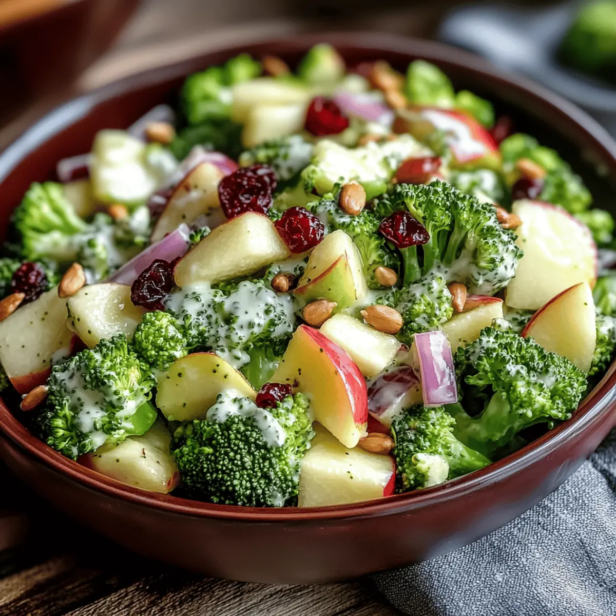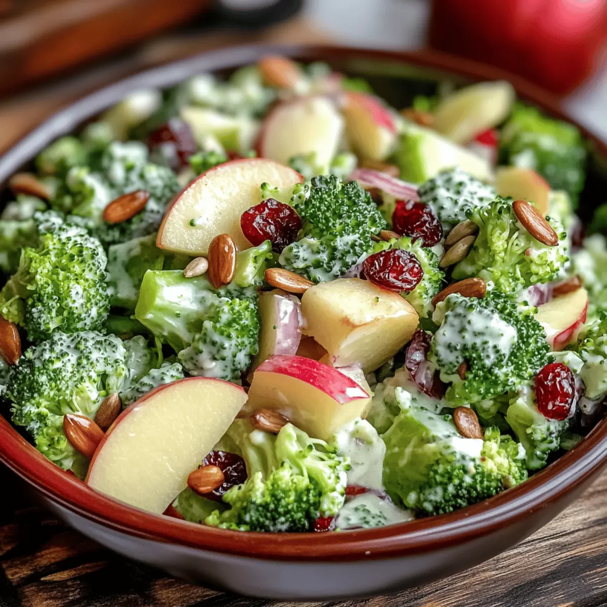 As I stood in my kitchen, the scent of freshly chopped broccoli wafted through the air, reminding me of vibrant summer picnics and laughter shared over good food. This Honeycrisp Apple Broccoli Salad beautifully balances that crunchy goodness with a delightful hint of sweetness, making it a memorable addition to any meal. Plus, it’s a no-cook dish that comes together in a flash—ideal for busy weeknights or casual gatherings! Packed with fresh ingredients and vibrant colors, it’s not only vegetarian and gluten-free but also an easy way to incorporate more nutrients into your day. Are you ready to dive into a bowl of refreshing goodness? Let’s get started on this simple yet satisfying recipe! Why is this salad the perfect choice? Flavor Explosion: The combination of crispy broccoli and sweet Honeycrisp apples creates a refreshing and delightful contrast that will tantalize your taste buds. No-Cook Convenience: This quick and easy recipe is perfect for those busy days when you crave something healthy without the hassle of cooking. Nutrient Powerhouse: Packed with vitamins and healthy fats, this Honeycrisp Apple Broccoli Salad is a guilt-free indulgence that supports your wellness goals. Versatile Serving Option: Whether as a light lunch or a vibrant side at BBQs, this salad adapts beautifully to any occasion—serve it with grilled chicken or alongside a hearty dish like Cheesy Chicken Broccoli for an impressive meal. Make-Ahead Magic: Enjoy the added benefit of preparing this salad in advance—flavors deepen overnight, making it even more delicious! Pop it in the fridge and bring it with you to gatherings or enjoy it for quick lunches at home. Honeycrisp Apple Broccoli Salad Ingredients For the Salad Broccoli – Fresh florets provide the structure and crunch, making this salad vibrant and nutritious. Honeycrisp Apple – Adds a naturally sweet and crisp texture; you can swap with Gala or Fuji apples if desired. Red Onion – Imparts a mild bite that enhances the overall flavor; shallots work well for a sweeter touch. Sunflower Seeds – Provide a crunchy element along with protein; almonds or walnuts are great alternatives if you have allergies. Dried Cranberries – Contribute a chewy sweetness; opt for raisins or chopped dates for a different kind of sweetness. For the Dressing Greek Yogurt – Creates a creamy and tangy base; consider using mayonnaise for a richer flavor. Honey (or Maple Syrup) – Sweetens the dressing; use maple syrup for a vegan-friendly option to keep your Honeycrisp Apple Broccoli Salad accessible. Apple Cider Vinegar – Adds a tangy acidity that balances the sweetness; white wine vinegar or lemon juice can also work well. Salt and Pepper – Essential for seasoning; adjust according to your taste preferences. Step‑by‑Step Instructions for Honeycrisp Apple Broccoli Salad Step 1: Prepare Fresh Ingredients Start by washing and chopping the broccoli into small, bite-sized florets. Dice the Honeycrisp apple into even pieces to ensure a pleasant crunch and sweet flavor in your Honeycrisp Apple Broccoli Salad. Finely chop the red onion, using a sharp knife for clean cuts, and set aside the chopped ingredients in a large mixing bowl. Step 2: Mix the Salad Components In the large bowl with your prepared veggies, add the chopped broccoli, diced Honeycrisp apple, finely chopped red onion, a handful of sunflower seeds, and a generous scoop of dried cranberries. Gently toss everything together using two large spoons, creating a colorful medley while ensuring the ingredients mix evenly without bruising the delicate apple pieces. Step 3: Whisk Together the Dressing In a separate medium-sized bowl, combine Greek yogurt, honey (or maple syrup for a vegan option), and apple cider vinegar. Add a pinch of salt and pepper to taste, then whisk the dressing vigorously for about 30 seconds or until it’s smooth and creamy. This dressing will bring a delightful tanginess to your Honeycrisp Apple Broccoli Salad. Step 4: Combine Salad and Dressing Pour the creamy dressing over the salad mixture in the large bowl. Using your spoons, gently toss the salad again, ensuring every piece is well-coated. Be cautious not to over-mix to preserve the integrity of the crunchy vegetables and apples while achieving a luscious blend of flavors throughout the salad. Step 5: Chill and Meld Flavors Cover the bowl with plastic wrap or a lid and refrigerate the salad for at least 30 minutes. This resting period allows the flavors of the Honeycrisp Apple Broccoli Salad to meld beautifully, enhancing the overall taste and ensuring a refreshing experience when you serve it chilled at your next gathering or meal. What to Serve with Honeycrisp Apple Broccoli Salad When planning a delightful meal, think of vibrant accompaniments that will complement the refreshing crunch of this salad beautifully. Grilled Chicken: Juicy and smoky, grilled chicken adds substance to your meal while pairing perfectly with the salad’s sweetness. It’s a classic match! Quinoa Pilaf: Earthy and nutty, quinoa pilaf brings a fluffy texture and wholesome vibe. Its subtle flavors let the salad shine while offering added protein. Garlic Roasted Potatoes: Crispy on the outside and tender on the inside, these potatoes add heartiness, balancing the freshness of your Honeycrisp Apple Broccoli Salad with comforting textures. Fresh Fruit Platter: An assortment of seasonal fruits like berries and citrus provides a burst of natural sweetness that echoes the flavors in the salad while refreshing your palate. Honey Mustard Glazed Salmon: Rich in flavor, this dish’s slight sweetness complements the Honeycrisp Apple Broccoli Salad beautifully, marrying sweet and savory in perfect harmony. Herbed Couscous: Light and fluffy, seasoned couscous adds a tender grain component that pairs excellently with the crunchy salad, creating a wonderful contrast of textures. Sparkling Water with Lemon: To drink, a refreshing glass of sparkling water w