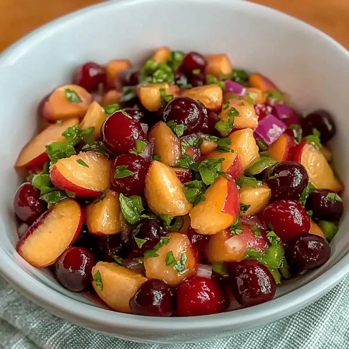 As I diced ripe peaches and pitted fresh cherries, a wave of summer nostalgia washed over me. It’s incredible how a simple combination can transport you to sunny picnics and lively barbecues. This Peach Cherry Salsa is my go-to summer appetizer—its vibrant mix of sweet and spicy flavors makes it a crowd-pleaser that’s brimming with life. Not only is it a breeze to whip up, but it also doubles as a refreshing dip for warm evenings spent outdoors. Imagine scooping up this colorful salsa with crispy tortilla chips or spooning it over grilled chicken, enhancing everything it touches. Are you ready to infuse your summer gatherings with a burst of flavor? Why is Peach Cherry Salsa a Must-Make? Freshness, the vibrant combination of juicy peaches and cherries brings a taste of summer right to your table. Easy to Prepare, this recipe is a quick fix perfect for those busy days. Versatile enough to pair with tortilla chips or grilled meats, it’s ideal for any occasion. Bright Flavors dance on your palate with each bite, ensuring it’s a hit at gatherings. For a twist, check out a beloved favorite: Greek Salsa Flavorful. You’ll be craving this refreshing treat all season long! Peach Cherry Salsa Ingredients For the Fruit • Fresh Peaches – Use ripe but firm peaches; they provide essential sweetness and a lovely texture for your salsa. • Fresh Cherries – Ripe cherries add complementary sweetness; make sure to pit them before using for easy enjoyment. For the Kick • Jalapeño Pepper – Adjust the amount based on your heat preference; this ingredient brings a wonderful balance to the sweetness of the peaches and cherries. • Red Onion – Adds a sharp crunch that perfectly contrasts with the soft fruits; let the salsa rest to meld the flavors. For the Zing • Fresh Lime Juice – This tangy addition enhances all the flavors and keeps the fruits fresh, preventing browning. • Salt – A little salt helps elevate the overall taste; start with a pinch and adjust according to your preference. This irresistible Peach Cherry Salsa combines fresh ingredients for a delightful summer appetizer you’re sure to love! Step‑by‑Step Instructions for Peach Cherry Salsa Step 1: Prepare Ingredients Begin by washing the fresh peaches and cherries thoroughly under cool water. Use a cherry pitter to remove the pits from the cherries, then dice them into bite-sized pieces. Next, peel the peaches, ensuring they’re firm yet ripe for optimal sweetness, and chop them similarly. Finely chop the red onion and jalapeño, adjusting the amount of jalapeño based on your desired spice level. Step 2: Mix Ingredients In a large mixing bowl, combine the diced peaches, pitted cherries, chopped jalapeño, and red onion. Squeeze fresh lime juice over the mixture, ensuring even coverage to enhance the salsa’s flavor and prevent browning. Sprinkle a pinch of salt over the ingredients and gently fold them together using a spatula, being careful not to mash the fruit. Step 3: Combine and Chill Once all the ingredients are well combined, cover the bowl with plastic wrap or a lid. Place the Peach Cherry Salsa in the refrigerator and let it chill for at least 30 minutes. This resting time allows the flavors to meld beautifully, creating a vibrant and delicious medley that sings of summer freshness when you finally dig in. Step 4: Serve Before serving, take the salsa out of the refrigerator and let it sit at room temperature for about 15 minutes. This helps to slightly warm the flavors and enhance their brightness. Serve the Peach Cherry Salsa in a colorful bowl with a side of crispy tortilla chips or as a delightful topping for grilled meats, ensuring a refreshingly fruity experience at your summer gatherings. How to Store and Freeze Peach Cherry Salsa Fridge: Keep your Peach Cherry Salsa in an airtight container in the refrigerator for up to 3 days. For the best flavor, it’s recommended to consume it within the first 24 hours. Freezer: If you want to store it longer, freeze the salsa in a freezer-safe container for up to 3 months. Thaw in the fridge overnight when ready to use, and expect some texture changes. Reheating: While salsa is best enjoyed fresh, if served warm, gently reheat in the microwave for about 10-15 seconds. Be careful not to cook it, as this can make the fruits mushy. Mix Before Serving: If liquid separates during storage, simply give the salsa a gentle stir before serving to redistribute the vibrant flavors. Peach Cherry Salsa Variations Customize your Peach Cherry Salsa with these fun twists that will make your taste buds dance! Nectarine Swap: Replace peaches with nectarines for a slightly firmer texture and a sweeter bite. Nectarines bring a bright zing that complements cherries beautifully. Mango Magic: Swap the peaches for diced mangoes to add a tropical sweetness. Imagine each scoop bursting with sunshine flavors, perfect for summer gatherings! Herb Infusion: Incorporate fresh cilantro or mint for a refreshing herbal note. A little goes a long way in brightening the entire dish, enhancing its summery appeal. Spice it Up: Add diced red chili for an extra kick, taking the heat to another level. This will liven things up, giving your salsa a bold presence! Citrus Zest: Consider mixing in orange or lemon zest for a zesty twist that enhances the fresh flavors. This zing can brighten the overall profile, making each bite more exciting. Texture Tease: Include diced cucumber for an unexpected crunch. This will not only add texture but also lend a refreshing feel that contrasts nicely with the sweetness. Tropical Heat: Use a jalapeño, or for those who enjoy a milder flavor, opt for a green bell pepper instead. The latter keeps the recipe friendly for everyone while still looking vibrant! Berry Blend: For a berry twist, add in diced strawberries or blueberries. This summery mix complements the peach and cherry perfectly, adding both color and sweetness. If you’re looking for more ways to enh