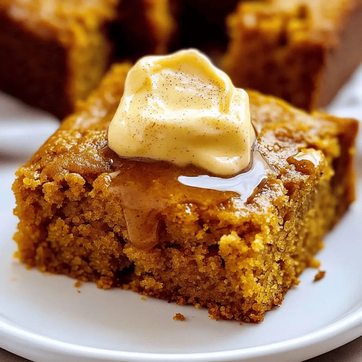 Jump to Recipe Print RecipeAs the leaves turn golden and the crisp air settles in, there’s nothing quite like the scent of a fresh Pumpkin Cornbread wafting through the kitchen. This recipe—filled with warm spices and paired with a fluffy Cinnamon Honey Butter—delivers the cozy essence of fall in every bite. What’s even better? It’s not only quick to prepare but also lends itself to gluten-free variations, making it accessible for all your loved ones. Imagine serving this delightful cornbread at your next gathering, as it effortlessly transitions from comforting side to a sweet treat. Are you ready to embrace the flavors of the season and impress your guests? Let’s dive in! Why is Pumpkin Cornbread a Fall Favorite? Cozy Comfort: This Pumpkin Cornbread brings the warmth of autumn right to your kitchen, inviting everyone with its delicious aroma. Quick Prep: With minimal steps, you can whip this delightful dish up in no time, making it perfect for any occasion. Versatile Pairing: Enjoy it as a sweet treat or alongside hearty soups—it’s adaptable enough to shine in any setting! Gluten-Free Friendly: Easily transform this recipe to accommodate gluten-free diets, so no one misses out on its fluffy goodness. Delectable Spread: The Cinnamon Honey Butter elevates each slice, adding a sweet, velvety touch that can turn any day special. Plus, if you’re craving something else, try serving it with Vanilla Cinnamon Buttermilk or Peanut Butter Banana for a delicious spread variety! Pumpkin Cornbread Ingredients Ready to get started on this seasonal delight? Here’s everything you need for Pumpkin Cornbread with Cinnamon Honey Butter! For the Cornbread All-Purpose Flour – Provides structure and tenderness; substitute with a gluten-free flour blend containing xanthan gum for a gluten-free option. Cornmeal – Adds classic cornbread texture and flavor; it’s essential for that authentic taste. Baking Powder – Helps the cornbread rise and achieve a lovely fluffy texture; don’t skip this crucial ingredient! Baking Soda – Works with the acidity of pumpkin for leavening, ensuring your cornbread is light and airy. Salt – Enhances overall flavor; a pinch goes a long way in balancing sweetness. Ground Cinnamon – Imbues the cornbread with seasonal warmth; it’s what makes it feel like fall in every bite. Ground Ginger – Adds depth and a zing to the spice profile, making every slice exciting. Ground Nutmeg – Provides a rich, signature fall flavor that complements the pumpkin perfectly. Ground Cloves – Contributes warmth and a touch of richness, rounding out the spice mix beautifully. Light Brown Sugar – Sweetens the cornbread with a subtle molasses flavor; substitute with granulated sugar if needed. Unsalted Butter – Adds richness and moisture; can be replaced with coconut oil for a dairy-free option. Canned Pumpkin – Provides the signature flavor and moisture; opt for fresh if you want a homemade touch. Sour Cream – Contributes to a moist texture and slight tanginess; Greek yogurt can be used as a substitute. Eggs – Bind the ingredients together and add structure—it’s essential for that perfect crumb. For the Cinnamon Honey Butter Unsalted Butter – Whipped until creamy, this is the base of your fluffy topping. Honey – Adds a natural sweetness that perfectly balances the cinnamon; feel free to adjust to taste. Powdered Sugar – Helps create that smooth, velvety texture for spreading; it dissolves seamlessly in the mix. Ground Cinnamon – Enhances the buttery spread with even more of that cozy flavor; it’s a beautiful way to tie it all together. There you have it! Gather these ingredients and prepare yourself for a delightful baking experience that’s sure to warm your heart and home this fall. Step‑by‑Step Instructions for Pumpkin Cornbread with Cinnamon Honey Butter Step 1: Preheat the Oven Begin by preheating your oven to 375°F (190°C). While it’s heating, grease an 8×8-inch baking dish with butter or non-stick spray to ensure your Pumpkin Cornbread releases easily once baked. This step is crucial for achieving that delightful crispy edge and tender center that everyone loves in cornbread. Step 2: Mix the Dry Ingredients In a large mixing bowl, whisk together the all-purpose flour, cornmeal, baking powder, baking soda, salt, ground cinnamon, ground ginger, ground nutmeg, and ground cloves. This combination of dry ingredients is essential for creating a fluffy and spiced Pumpkin Cornbread. Make sure no lumps remain for a smooth batter that will rise beautifully in the oven. Step 3: Prepare the Wet Ingredients In a separate medium bowl, mix the light brown sugar with the melted unsalted butter until they are well combined. Then, stir in the canned pumpkin until the mixture is smooth. Follow this by whisking in the sour cream and eggs, which will provide moisture and help bind the cornbread together. Step 4: Combine Mixtures Pour the wet mixture into the bowl containing the dry ingredients. Gently fold the ingredients together using a spatula or wooden spoon, being careful not to overmix. You’re looking for a homogenous batter; it’s okay if a few lumps remain. This Pumpkin Cornbread needs just the right amount of tenderness, so mix until you see no dry pockets. Step 5: Bake the Cornbread Spread the batter evenly in the prepared baking dish, ensuring it reaches the corners. Place the dish in your preheated oven and bake for 25-30 minutes. You’ll know it’s done when the top is golden brown and a toothpick inserted into the center comes out clean. Don’t worry if the top has a slight dome; it will settle as it cools! Step 6: Cool the Cornbread Once baked, remove the cornbread from the oven and allow it to cool in the dish for about 10 minutes. Then, transfer it to a wire rack to cool completely. This cooling period helps the flavors to meld beautifully and makes slicing much easier, providing the perfect texture for your Pumpkin Cornbread