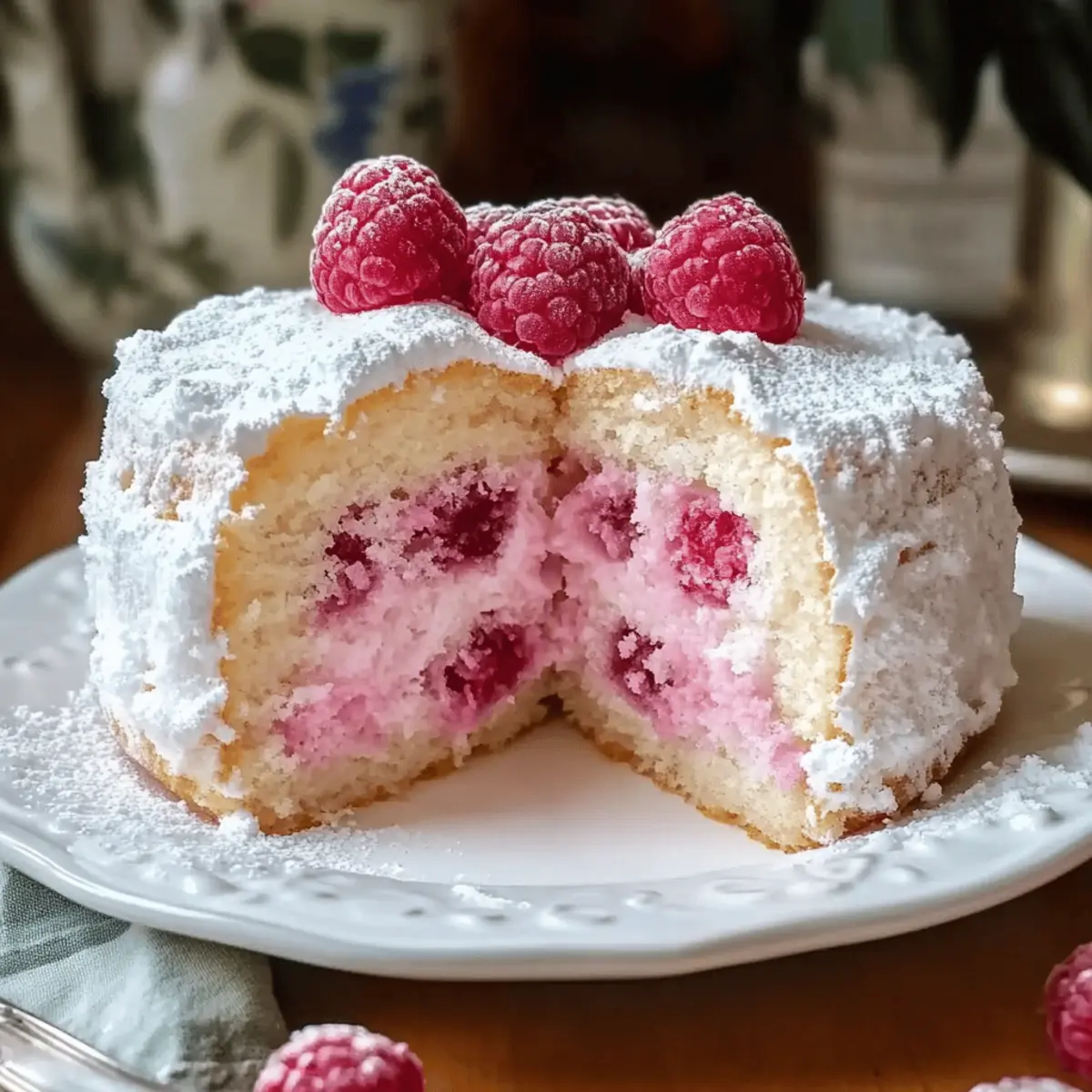 As I took my first bite of this Raspberry Angel Food Cake, a wave of fresh, fruity goodness washed over me—it felt like summer on a plate. This light dessert is a game-changer for anyone looking to indulge without the guilt, offering a delightful balance of airy sweetness and tangy raspberries. Not only is it easy to whip up for any occasion, but it’s also a healthier alternative to heavier cakes, making it a fantastic choice for gatherings or simply a satisfying treat for your family. Imagine serving a slice at brunch or on a cheerful picnic; how can you resist such a simple elegance? Ready to dive into the details? Let’s get baking! Why is this dessert a must-try? Lightness is key to this cake’s charm; it’s fluffy and airy, making every bite a delight. Fruity Flavor from fresh raspberries adds a bright, vibrant touch that’s both refreshing and satisfying. Easy Preparation means you can whip it up in no time, perfect for unexpected guests. Health-Conscious Option makes it a guilt-free indulgence, lowering those calorie counts without sacrificing taste. Serve this at your next gathering and watch it disappear faster than you can say “dessert”! Raspberry Angel Food Cake Ingredients • Discover the simple yet delightful components of this light dessert! For the Cake Egg Whites – Essential for achieving the cake’s signature airy texture; ensure no yolk is present for the best results. Granulated Sugar – Sweetens the cake and stabilizes the egg whites; feel free to swap for a sugar substitute for a low-calorie option. Cake Flour – Forms the base of the cake for a tender crumb; all-purpose flour works in a pinch if needed. For the Fruit Raspberries – Brighten up your cake with vibrant freshness; fresh is best, but frozen can be used in a pinch without compromising flavor. For the Topping Powdered Sugar – A light dusting adds sweetness without overpowering the cake; optional if you prefer it less sweet. Whipped Cream – Enhances richness when served on top; opt for whipped coconut cream for a delightful non-dairy alternative. Step‑by‑Step Instructions for Raspberry Angel Food Cake Step 1: Preheat the Oven Begin your baking journey by preheating your oven to 350°F (175°C). As it’s heating up, prepare your tube pan—do not grease it! This is crucial for our Raspberry Angel Food Cake, as the batter needs to cling to the sides for that signature rise. Step 2: Whip the Egg Whites In a large mixing bowl, add your egg whites and beat them with an electric mixer on medium speed until they become frothy. Gradually introduce granulated sugar to the mixture, continuing to beat until you achieve stiff peaks. This process usually takes about 5-7 minutes, and the egg whites should appear glossy and hold their shape well. Step 3: Sift the Dry Ingredients Using a fine mesh sieve, sift together the cake flour and any additional dry ingredients you may want to include. This step not only helps to aerate your flour but also removes any lumps, ensuring a smooth and light texture in your Raspberry Angel Food Cake. Step 4: Fold the Mixtures Gently incorporate the sifted flour mixture into the whipped egg whites. Use a spatula to fold the ingredients together carefully; aim to maintain the airiness of the whipped egg whites. This delicate folding should be done until just combined, avoiding over-mixing to keep that lovely fluffy texture. Step 5: Add the Raspberries Now it’s time to introduce those beautiful raspberries! Carefully fold them into the batter, ensuring they are evenly distributed throughout the mixture. This step not only adds vibrant color but also brings a burst of fruity flavor to each slice of your Raspberry Angel Food Cake. Step 6: Bake the Cake Pour the batter into your ungreased tube pan, spreading it evenly. Place it in the preheated oven and bake for about 35 to 40 minutes. Keep a close eye on your cake; it should turn a lovely golden brown and spring back to a light touch when it’s done. Step 7: Cool the Cake Once baked, remove the Raspberry Angel Food Cake from the oven and immediately invert the pan upside down. Allow the cake to cool completely in this position; this is essential for maintaining its structure and preventing it from collapsing while it cools. Expert Tips for Raspberry Angel Food Cake • Egg Whites Matter: Ensure that egg whites are free of any fat or yolk; this is essential for achieving those glorious, fluffy peaks that define your Raspberry Angel Food Cake. • No Greasing Please: Do not grease the tube pan! The batter needs to cling to the sides to rise properly, lending that sought-after airy texture. • Gentle Folding: When adding dry ingredients to whipped egg whites, fold gently to maintain airiness. Over-mixing will result in a denser cake, turning your light dessert into a disappointment. • Perfect Cooling: Invert the pan immediately after baking and let it cool completely. This prevents the cake from collapsing, ensuring your Raspberry Angel Food Cake stands tall and proud. • Don’t Rush It: Allow the cake to fully cool before removing it from the pan. Patience here pays off with a beautifully structured dessert. What to Serve with Raspberry Angel Food Cake Elevate your dining experience with these delightful pairings that complement the light and refreshing nature of this cake. Fresh Berries: A mix of strawberries, blueberries, and blackberries adds vibrant flavor and a burst of freshness, enhancing the berry experience. Not only do they look stunning on the plate, but they also balance the sweetness of the cake perfectly. Whipped Cream: Light and airy whipped cream offers a rich contrast that makes each slice of Raspberry Angel Food Cake even more indulgent. Consider adding a hint of vanilla or almond extract for extra flavor. Citrus Salad: A zesty citrus salad with oranges and grapefruits brightens the table and provides a refreshing counterpoint to the cake’s sweetness. The tangy juice complements the raspberr