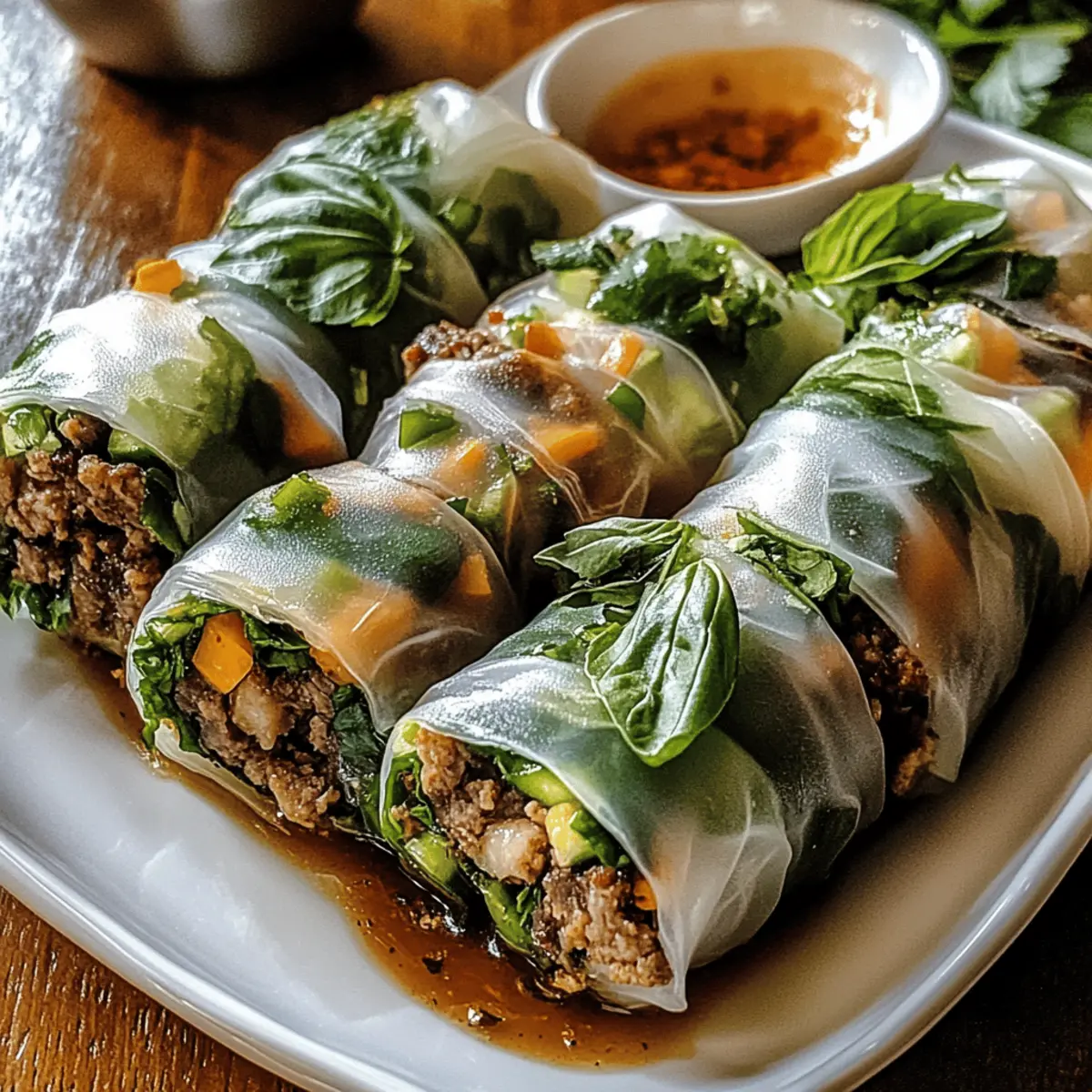 Jump to Recipe Print RecipeAs I unwrapped the delicate rice paper, the fragrant aroma of Thai basil whisked me away to a bustling market in Bangkok, where vibrant flavors come alive. These Thai Basil Beef Rolls are not only a delightful way to enjoy tender beef and aromatic basil, but they also come together quickly—perfect for those evenings when you crave a homemade meal without the fuss. Whether you’re serving them as an elegant appetizer at your next gathering or enjoying them as a satisfyingly light dinner, these rolls are ideal for any occasion. Plus, you can easily adapt the heat to suit your taste preferences. Are you ready to take your taste buds on an unforgettable adventure? Why You’ll Love These Rolls Fresh, Bold Flavors: Each bite bursts with the aromatic essence of Thai basil, savory beef, and vibrant veggies. Quick to Prepare: These rolls come together in no time, making them perfect for busy weeknights or last-minute gatherings. Versatile Options: Feel free to customize with different proteins or veggies—try chicken or tofu for a fun twist! Health-Conscious Choice: Packed with protein and fresh ingredients, they’re a great gluten-free option that satisfies without the heaviness. Perfect for Sharing: Ideal as finger food, these rolls are a hit at parties, making them a must-try for your next appetizer spread. For more delightful beef recipes, check out our Cheesy Beef Wraps or Mongolian Ground Beef! Thai Basil Beef Rolls Ingredients • Here’s everything you need to create these mouthwatering Thai Basil Beef Rolls. For the Beef Mixture Ground Beef – A savory and umami-rich base; feel free to substitute with ground chicken or turkey for a lighter option. Soy Sauce – Amplifies the umami flavors; opt for tamari for a gluten-free version. Chili Flakes – Adjust the amount for your desired heat level; fresh chilies can be used for a bolder spice. For the Fresh Elements Thai Basil – Delivers a signature peppery flavor; if unavailable, use regular basil in a pinch, though the taste will differ. Vegetables (Carrots, Cucumber, etc.) – Adds freshness and crunch; bell peppers or radishes can be delicious alternatives. For the Wrapping Rice Paper Wrappers – These serve as the perfect hold for your rolls; substitute with lettuce leaves for a low-carb option. With these ingredients, you’re all set to enjoy the delightful experience of making Thai Basil Beef Rolls, perfect for any occasion! Step‑by‑Step Instructions for Thai Basil Beef Rolls Step 1: Prepare the Beef Mixture In a large skillet over medium heat, add 1 pound of ground beef and cook until browned, about 5–7 minutes. Use a wooden spoon to break it apart as it cooks. Once the beef is fully cooked, stir in 2 tablespoons of soy sauce and 1 teaspoon of chili flakes, mixing well. Remove from heat and set aside to cool. Step 2: Soak the Rice Paper Fill a large shallow dish with warm water. Carefully dip each rice paper wrapper into the water for about 10–15 seconds until it becomes soft and pliable, but not overly soggy. Lay the soaked rice paper flat on a clean, damp kitchen towel to keep it from drying out as you work. Step 3: Assemble the Rolls Place a fresh basil leaf at the bottom center of the rice paper wrapper. Spoon a small portion of the beef mixture onto the basil, followed by thin slices of your chosen vegetables, such as cucumber or carrot. Fold the sides of the rice paper over the filling, tuck the bottom up over the ingredients, and roll tightly, ensuring everything is enclosed. Step 4: Serve Your Rolls Once all the Thai Basil Beef Rolls are assembled, arrange them on a serving platter. For added flair, you can slice them in half to showcase the colorful filling or serve them whole. Pair with your favorite dipping sauce, such as sweet chili or peanut sauce, for a delightful finish to your homemade meal. What to Serve with Thai Basil Beef Rolls As these delightful rolls beckon with their savory aroma and vibrant colors, pairing them with the right sides will elevate your dining experience. Crispy Spring Rolls: Light and crispy, these add a satisfying crunch that complements the tender beef and fresh basil perfectly. Thai Cucumber Salad: A refreshing mix of cucumbers, mint, and tangy dressing provides a bright contrast to the rich flavors of the rolls. The coolness enhances the dish, making each bite a delightful balance. Peanut Dipping Sauce: Creamy and nutty, this sauce creates a luxurious dip for the rolls, enriching each mouthful with an extra layer of flavor. Mango Sticky Rice: Sweet and creamy, this iconic Thai dessert will leave your taste buds dancing after the savory rolls. The sweetness of the mango perfectly contrasts with the savory beef flavors. Lemongrass Tea: This fragrant herbal tea cleanses the palate and complements the aromatic basil, providing a soothing finish to the meal. Garlic Fried Rice: The garlicky aroma and savory notes of fried rice create a comforting base that pairs beautifully with the fresh flavors of the rolls. Sliced Avocado: Creamy avocado adds a rich texture that balances the freshness of the rolls, making for a delightful combination on your plate. Coconut Water: A light, refreshing drink that quenches your thirst while its slightly sweet flavor harmonizes with the savory elements of the dish. Serve these delightful accompaniments alongside your Thai Basil Beef Rolls for a meal that’s as satisfying as it is memorable! Make Ahead Options These Thai Basil Beef Rolls are perfect for meal prep aficionados! You can prepare the beef mixture up to 3 days in advance, allowing the flavors to meld beautifully. Simply cook and cool the beef, then store it in an airtight container in the refrigerator. The rice paper wrappers and vegetables can be prepped just a few hours ahead; keep the wrappers covered with a damp cloth to prevent them from drying out. When you’re ready to serve, soak the rice paper and assemble the rolls with the seasoned beef and fresh v