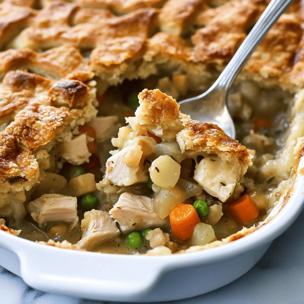 Jump to Recipe Print RecipeAs I rummaged through my fridge the day after Thanksgiving, I found myself facing a delightful mini crisis: what to do with all that leftover turkey? Luckily, I remembered my favorite dish, the Leftover Thanksgiving Turkey Pot Pie with Stuffing Crust. This recipe not only gives a comforting twist to your holiday leftovers, but it also turns a potential waste into a warm, hearty meal that’s a breeze to whip up. With a crispy, savory stuffing crust and a creamy filling packed with turkey and vegetables, it’s the ultimate crowd-pleaser. Whether you’re trying to bring joy back to your post-holiday meals or simply need a delicious comfort food fix, this pot pie has you covered. Ready to transform your turkey leftovers into something extraordinary? Let’s dive into this delicious recipe! Why is this pot pie a must-try? Comforting, this turkey pot pie wraps your leftover Thanksgiving turkey in a crispy stuffing crust, creating the ultimate cozy dish. Easy to make, with simple ingredients and straightforward steps, it’s perfect for home cooks of all skill levels. Crowd-pleasing flavors come from a delicious blend of tender turkey, fresh veggies, and savory spices, making it a hit for family dinner. Versatile options allow you to customize the filling with other veggies or even chicken, so you can enjoy it anytime, not just for Thanksgiving. Plus, it’s a great way to reduce food waste and turn those holiday leftovers into a meal everyone will love! For more comforting recipes, check out my Parmesan Roasted Potatoes or Glazed Chicken Vegetables for a delightful twist! Thanksgiving Turkey Pot Pie Ingredients • Turn your holiday leftovers into a delightful feast with these ingredients! For the Filling Unsalted Butter – Adds richness and flavor; substitute with olive oil for a dairy-free option. Onion (3/4 C, diced) – Provides aromatics and sweetness; can use shallots or leeks as alternatives. Celery (1/3 C, diced) – Contributes texture and freshness; fennel can be substituted for a unique flavor. Carrots (1/3 C, chopped) – Adds subtle sweetness and color; parsnips may be used as an alternative. Garlic (2 cloves, minced) – Enhances flavor depth; garlic powder can replace fresh garlic if necessary. Potatoes (1 1/2 C, chopped) – Acts as a bulk ingredient, giving heartiness; sweet potatoes can be swapped for a different taste. Flour (2 Tbsp) – Thickens the filling; cornstarch can act as a gluten-free thickener. Chicken Broth (2 C) – Provides moisture and flavor base; vegetable broth works for a vegetarian option. Heavy Cream (3/4 C) – Adds creaminess to the filling; substitute with coconut cream for a dairy-free version. Leftover Turkey (2 1/2 C, chopped or shredded) – The star ingredient, adding protein; chicken may be used if turkey is unavailable. Peas (1/4 C) or Green Beans – Enhance the filling with color and flavor; any leftover vegetables can be used. Corn (1/4 C) – Adds sweetness and texture; substitute with bell peppers for a different flavor profile. Salt (1 tsp) – Enhances overall flavor; adjust to taste based on the broth’s sodium content. Ground Black Pepper (1/2 tsp) – Provides seasoning; white pepper can be an alternative for a milder taste. Dried Thyme (1/2 tsp) – Offers an aromatic flavor; fresh thyme or Italian seasoning can replace this. For the Crust Stuffing (2 1/2 C) – Forms the crust providing texture and flavor; gluten-free stuffing can be used if required. Transform your Thanksgiving turkey leftovers into something extraordinary with this delicious Thanksgiving Turkey Pot Pie with Stuffing Crust! Step‑by‑Step Instructions for Thanksgiving Turkey Pot Pie with Stuffing Crust Step 1: Preheat the Oven Begin by preheating your oven to 350°F (175°C). While it warms up, take a 2-quart baking dish and lightly spray the insides with olive oil to prevent sticking. This ensures that your Thanksgiving Turkey Pot Pie with Stuffing Crust releases easily after baking. Step 2: Sauté the Vegetables In a large stock pot or Dutch oven set over medium-low heat, melt 3 tablespoons of unsalted butter until bubbly. Add in 3/4 cup of diced onions, 1/3 cup of diced celery, and 1/3 cup of chopped carrots. Sauté the mixture for about 5–7 minutes until the vegetables soften and the onions become translucent, allowing their aromas to fill your kitchen. Step 3: Add Garlic and Potatoes Next, stir in 2 minced garlic cloves and cook for an additional minute to release their flavors. Then, add 1 1/2 cups of chopped potatoes, mixing everything well. This will enhance the filling of your pot pie, giving it a hearty texture as the potatoes soften in the sauce. Step 4: Incorporate Flour Sprinkle 2 tablespoons of flour over the vegetable mixture, stirring to coat everything evenly. This step is crucial as it helps thicken the filling. Cook this mixture for about 1–2 minutes, allowing the flour to toast slightly, enhancing the flavors of your Thanksgiving Turkey Pot Pie with Stuffing Crust. Step 5: Add Broth and Cream Slowly pour in 2 cups of chicken broth and 3/4 cup of heavy cream, stirring constantly to avoid lumps. Raise the heat slightly to bring the mixture to a gentle boil. Allow it to bubble for about 3–5 minutes, or until the mixture thickens and becomes creamy, creating the luscious filling for your pot pie. Step 6: Mix in Turkey and Seasonings Once thickened, reduce the heat to a simmer and stir in 2 1/2 cups of chopped leftover turkey, 1/4 cup of peas, 1/4 cup of corn, 1 teaspoon of salt, 1/2 teaspoon of ground black pepper, and 1/2 teaspoon of dried thyme. Stir everything well and let it cook for another 2–3 minutes, allowing the flavors to meld together beautifully. Step 7: Assemble the Pot Pie Carefully transfer the creamy turkey mixture to the prepared baking dish, spreading it out evenly. Now, take 2 1/2 cups of stuffing and sprinkle it generously over the top as a crust, creating a delightful, crunchy layer that