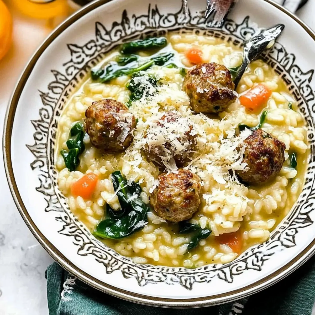 The aroma of Italy wafts through my kitchen as I prepare a dish that feels like a warm hug—Instant Pot Italian Wedding Risotto with Meatballs. This unique recipe beautifully marries the heartiness of classic Italian wedding soup with the creamy comfort of risotto. What sets it apart is not just the tender meatballs nestled in velvety rice, but also the fact that you can whip it all up in a mere six minutes! Whether you’re entertaining guests or craving a cozy night in, this dinner will undoubtedly impress without the stress. Plus, there’s a gluten-free option for those with dietary preferences! Are you ready to dive into a bowl of this comforting delight? Why is this Risotto a Must-Try? Unmatched Convenience: With the Instant Pot, you can create this luxurious Wedding Risotto in just 6 minutes, making it perfect for busy weeknights or last-minute gatherings. Flavor Explosion: Each bite is a delightful experience, with juicy meatballs, aromatic vegetables, and rich Parmesan melding seamlessly into creamy risotto—comfort food at its finest! Versatile Ingredients: Feel free to customize with gluten-free breadcrumbs or switch up the greens to suit your taste; there are plenty of ways to make it your own! Crowd-Pleasing Appeal: Whether serving family or entertaining guests, this dish is sure to impress everyone at the table. Pair it with a simple green salad for a complete meal! Easy Prep: Minimal fuss means more time to relax and enjoy. Plus, leftovers reheat beautifully; just add a splash of broth to keep it creamy, making it perfect for meal prep! Wedding Risotto Ingredients • For a rich, comforting experience, gather these key ingredients! For the Meatballs Ground Beef – A primary protein source; feel free to use ground turkey for a leaner version. Sweet Italian Sausage – Infuses the dish with flavor and richness; can be substituted with spiced ground pork or chicken. Large Egg – Acts as a crucial binder in the meatballs. No substitutions are required here. Bread Crumbs – Provides much-needed texture; gluten-free breadcrumbs offer an option for those avoiding gluten. Parmesan Cheese – Enhances flavor and adds richness; for a sharper taste, use Pecorino Romano. Garlic – Adds aromatic depth to the meatballs; fresh garlic or garlic powder both work well. Coarse Salt & Black Pepper – Essential for balancing flavors; adjust to your taste preferences. For the Risotto Extra Virgin Olive Oil – Used for sautéing veggies; can substitute with avocado oil or melted butter if preferred. Unsalted Butter – Gives the risotto a creamy finish; use salted butter if that’s what you have on hand. Yellow Onion, Carrot, Celery – Aromatic vegetables that form the flavor base; leeks can easily replace onions if desired. Arborio Rice – The heart of the risotto, known for its creamy texture; you can substitute with Carnaroli rice. Chicken Broth – The flavorful cooking liquid; vegetarian broth is a great alternative for a vegetarian version. Escarole/Kale/Spinach – Added at the end for nutrition and flavor; other leafy greens like Swiss chard can also work well. With these Wedding Risotto ingredients, you’re well on your way to creating a soul-soothing dish in no time! Step‑by‑Step Instructions for Instant Pot Italian Wedding Risotto with Meatballs Step 1: Prepare Meatballs In a large mixing bowl or stand mixer, combine ground beef, sweet Italian sausage, egg, breadcrumbs, Parmesan cheese, minced garlic, salt, and pepper. Mix gently until just combined to avoid tough meatballs. Form the mixture into 1-inch balls and place them on a baking sheet. Broil the meatballs in the oven for 5-6 minutes until they are golden brown and reach an internal temperature of 165°F. Step 2: Sauté Aromatics Set your Instant Pot to ‘Sauté’ mode and heat 2 tablespoons of extra virgin olive oil along with 1 tablespoon of unsalted butter. Once the butter melts and starts to bubble, add diced yellow onion, diced carrot, and diced celery. Sauté these aromatic vegetables for about 3-4 minutes until they are softened and fragrant, stirring occasionally to ensure even cooking. Step 3: Toast Rice Add 1 ½ cups of Arborio rice to the pot, stirring gently to coat the grains with the flavorful oils and vegetables. Toast the rice for about 1 minute until it becomes slightly translucent and aromatic, enhancing the overall flavor of your Wedding Risotto. Make sure to keep stirring to prevent sticking as you prepare for the next step. Step 4: Cook Risotto Cancel the ‘Sauté’ function and pour in 4 cups of chicken broth. Stir well, making sure all the rice is submerged. Close the lid securely and set the Instant Pot to ‘Pressure Cook’ for 6 minutes. Once the cooking time is completed, let it naturally release pressure for 5 minutes, which helps to create a creamy texture in the risotto. Step 5: Finish the Dish Carefully open the lid of the Instant Pot and stir in additional ½ cup of grated Parmesan cheese and a handful of chopped greens like escarole or spinach. The residual heat will wilt the greens perfectly. Taste and adjust seasoning with more salt and pepper if desired, and ladle the creamy Wedding Risotto into bowls, topping each with perfectly broiled meatballs and a sprinkle of extra cheese. How to Store and Freeze Wedding Risotto Fridge: Store leftover Wedding Risotto in an airtight container for up to 3 days. Make sure to let it cool completely before sealing to avoid condensation. Freezer: You can freeze risotto for up to 2 months. Portion it into freezer-safe bags or containers, removing as much air as possible. This will help maintain its creamy texture. Reheating: When ready to enjoy, thaw overnight in the fridge. Reheat on the stovetop over low heat, adding a splash of chicken broth to restore its creamy consistency. Freezing Meatballs: If you have extra meatballs, freeze them separately for up to 3 months. Simply reheat in the oven or a saucepan for a quick meal addition later.